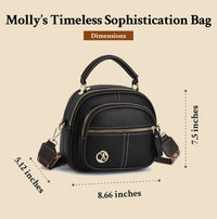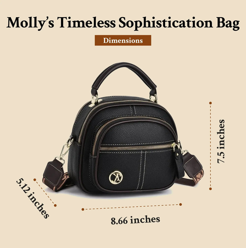 - Elegantes Design: Mollys zeitlose Eleganz zeichnet sich durch ein zeitloses Design aus, das nahtlos zu jedem Outfit oder Anlass passt. Vom Büro bis zu Wochenendausflügen verleiht diese Tasche Ihrem Stil einen Hauch von Eleganz.